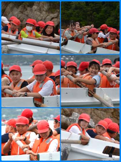 昼食後にマリーンピアへの入所式をしました。司会の進行の下、二人が力強く誓いの言葉を述べてくれました。その後、宿泊室に入り、今日のメインイベント、アスレチックとカッター体験に移ります。