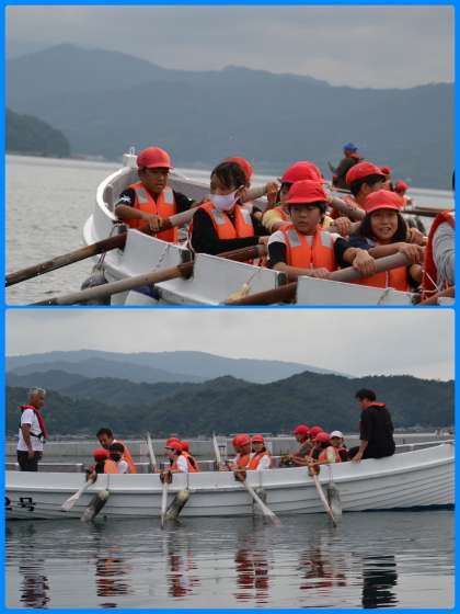 カッター全体が写った写真をあげておりませんでした。海の写真もあわせてご覧下さい。日が照るととっても鮮やかな海の色。島育ちの血が騒ぎます。