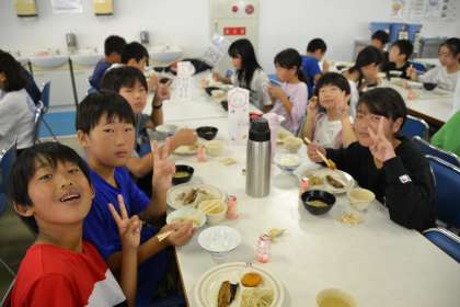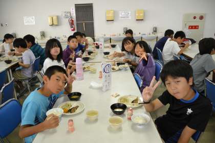朝食の様子ラストです。今日はこの後、ふるさとミュージアムを見学し、昼食後に学校に戻る予定です。