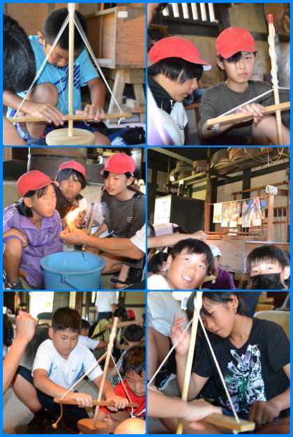 引き続き火おこし体験です。そう簡単にはつかないのですが、火がついた時の成就感はとても大きいようです。生徒の心に火をつけるのと同様、なかなか大変なようです。