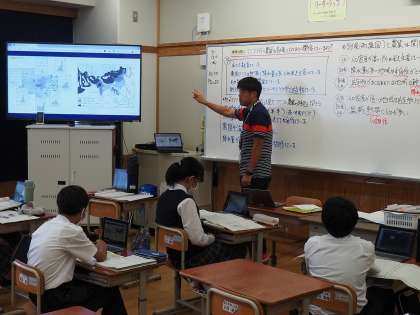 東アジア地域の農業についてGIGA端末も使いながら学習していました。