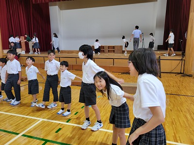 「猛獣狩り」という遊びをしました。6年生の「猛獣狩りに行こうよ」という掛け声に2年生の「猛獣狩りに行こうよ」という元気な声が返ってきて,とてもほっこりとした和やかな雰囲気が流れていました。