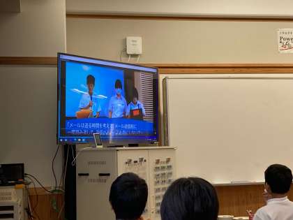 今回、ビブリオバトル開催のお知らせと共に、図書委員がおすすめの方を紹介する動画を各学級で流しました。