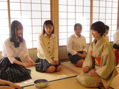 今週のこころ科は茶道を行いました。地域の方にお世話になって学校の茶室である清蓮の間とランチルームで学習しました。静かな雰囲気の中、茶道の所作を教えていただき実際にお茶とお菓子をいただきました。