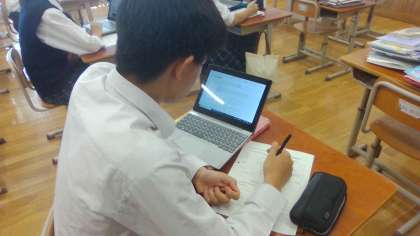 9年生英語の授業では,災害について学んだところだったので,実際に起こったモロッコの地震とリビアの洪水について,ニュース英語を聞き取りました。スピードの速い英語を聞きながら,概要や要点を捉えるのは難しかったと思いますが,根気強く集中して聞いていました。