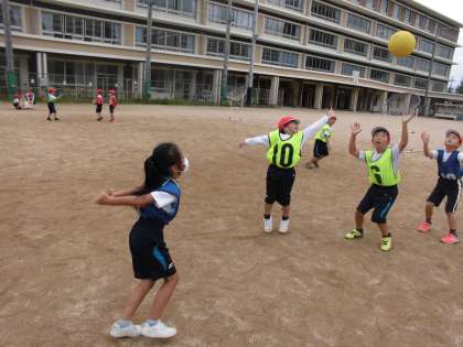「○○さん、前に投げるよ!」「もっと遠くに!!」