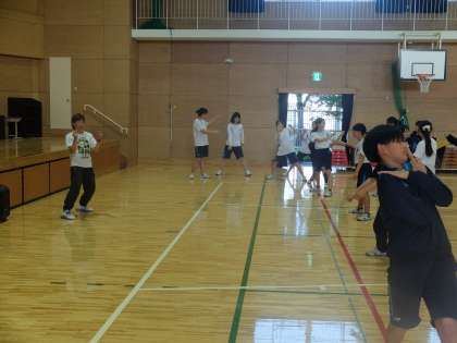 京都明徳授業「ICT活用」「ダンス」の授業の様子です。ノリノリで楽しく授業に参加していました。