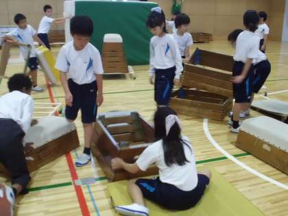 4年生 体育 片付けもみんなで…