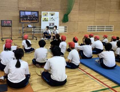体育の授業の終わりに、1組生徒から先生にお祝いサプライズがありました!