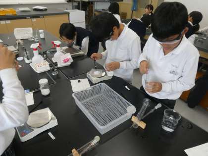 理科の実験では、「食塩が水に溶ける量には限りがあるのか」という問いで学習を進めていました。