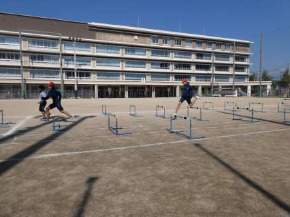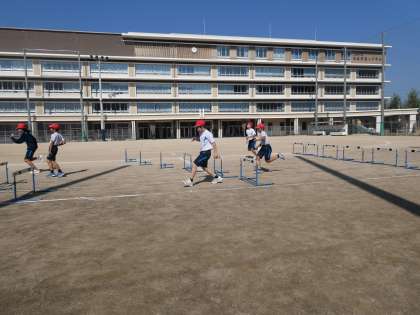 6年2組は、第1回50mハードル走のタイム計測を行いました。