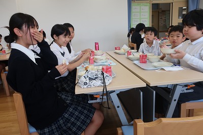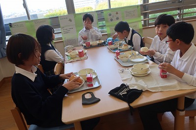 縦割りでの交流機会を増やそうということで、給食を縦割りメンバーと食べました。