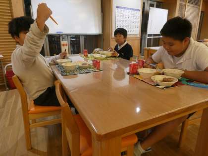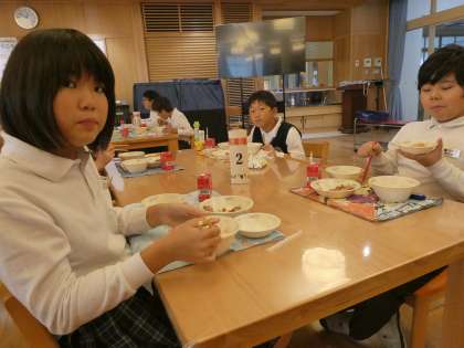 友だちと対面になって話をしながら食べる給食はとても有意義な時間になったようです。