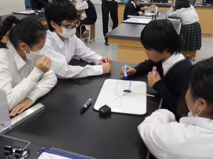 という問いに仮説を立て、説明し、実際にやってみる授業でした。