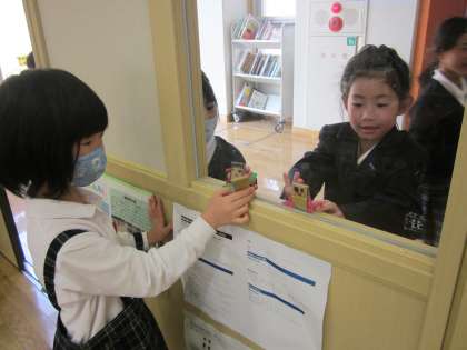 どの隙間が「すきまちゃん」が好きか,いろいろ置く場所を変えて楽しんでいました。