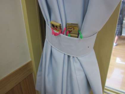 隙間が好きな「すきまちゃん」をつくって,教室にあるすきまに置きました。