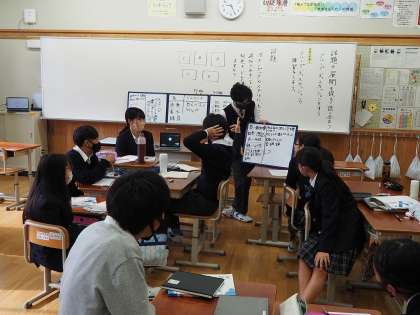 司会を中心に、話題に合わせて話を展開し、グループとしての報告までたどり着くことができました。