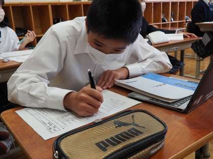 粘り強く漢字や文法の問題に取り組んでいました。
