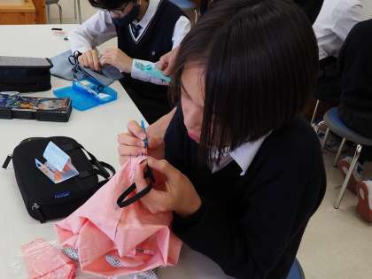 家庭科のエコバッグづくりもいよいよ大詰めです。