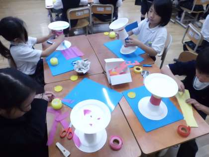 画用紙や紙テープ、お花紙などを切り貼りし、