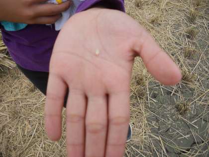 「こんなに小さいお米やで。」