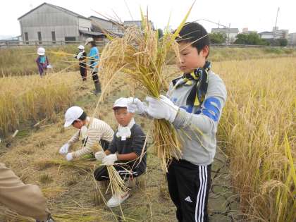 友だちと自然に声をかけ合いながら稲刈りをしているのが素敵でした。