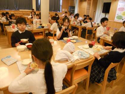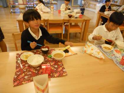 ランチルームに2学年が一緒に食べることが初めての3年生はドキドキ!でもワクワクしていました。