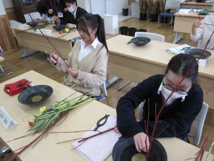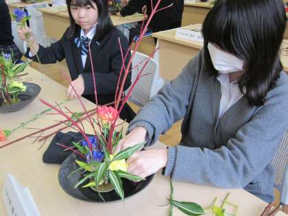 華道体験での7年2組の様子です。