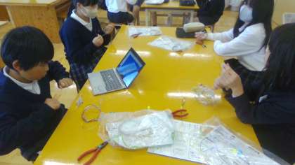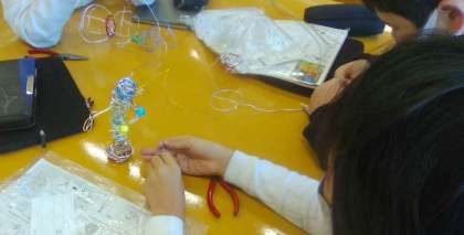 図工では,ワイヤーを使って,立体的な作品作りをしています。