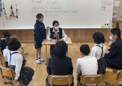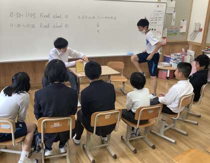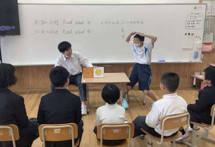 英語Cチームの生徒がAチームの生徒に英語絵本の読聞かせをしてくれました。