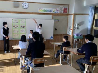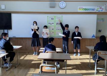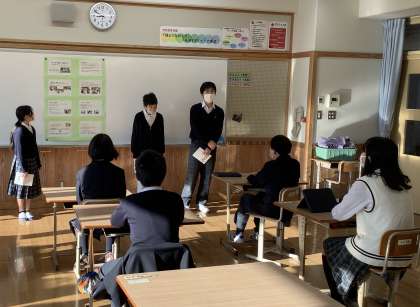 今週の金曜日の全校「ポスターセッション」にむけて学習を進めています。1組では生活単元学習の時間で取り組んでいる「貢献活動」について発表します。クリーニング班、園芸班、清掃班それぞれが、これまでの活動や今後さらなる貢献をめざして考えたことなどをポスターにまとめて発表します。