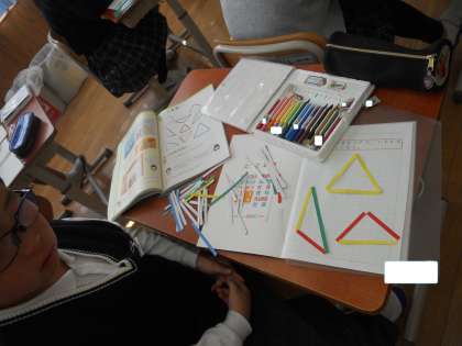 今日は、ヨットの写真やハンガーの写真を見て、何の形に似ているかな?とペアで話し合いました。