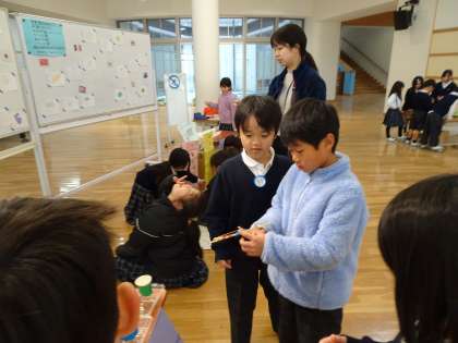 2年生が生活科の学習でつくったおもちゃで遊びました。