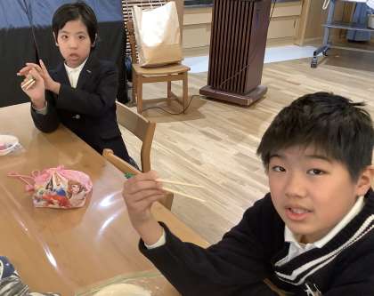3学期の「食の学習」がありました。学期ごとに栄養教諭の廣瀬先生が授業をしてくださっています。今回のテーマは「お箸の使い方」です。