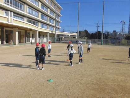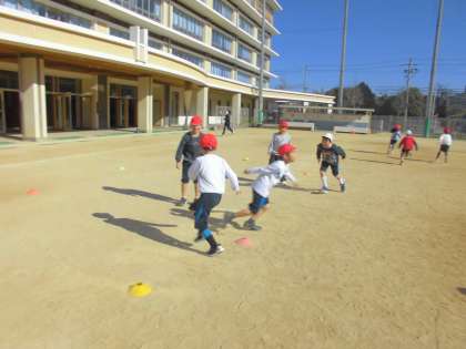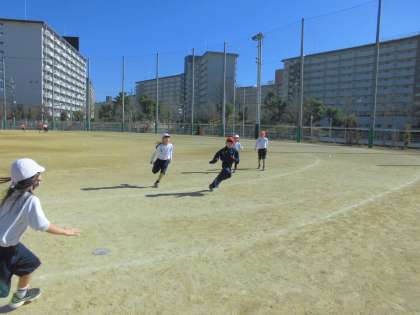 けいさつグループとどろぼうグループに分かれて、けいさつグループがどろぼうグループを捕まえます。捕まっても、仲間にタッチをしてもらえれば復活ができるので、捕まった子も必死に仲間を応援する姿が見れました。