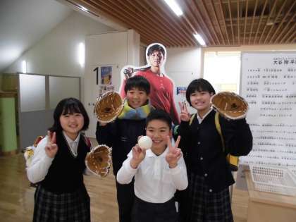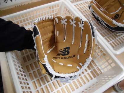 子どもたちは興味津々で、グローブをはめて喜んでいました。
