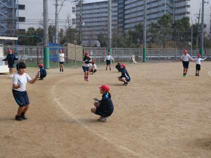 ジョギングの前には、縄跳びの学習もしています。