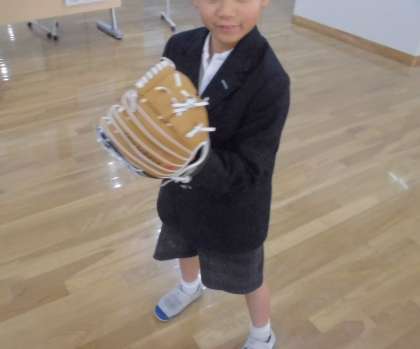 放課後にグラブを実際にはめて、投げる構えを取ったり、一緒に置いているボールを触ったり、とても楽しそうな様子でした。