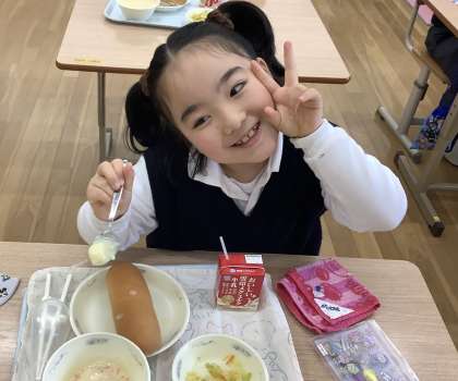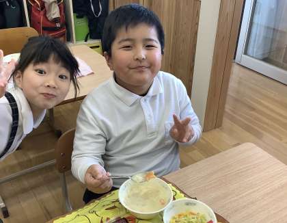 給食のクリームシチューに星型のにんじんが入っていました!