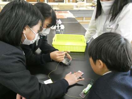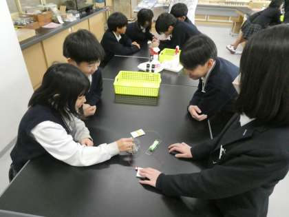 生徒たちは楽しそうに参加しながら電磁石になっていることの確認をおこなっていました。