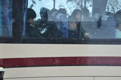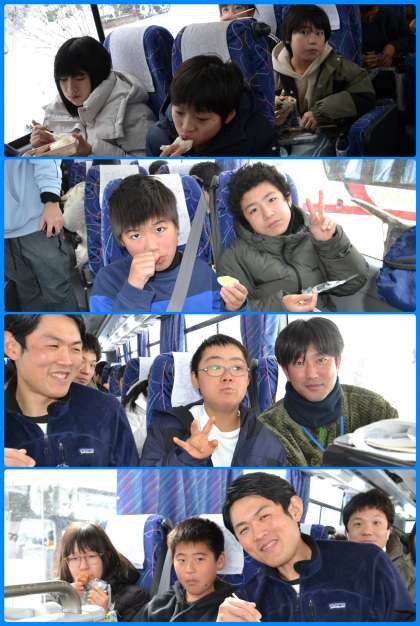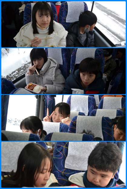 チェーン装着の時間を利用して車内での昼食です。朝早くから作っていただきありがとうございました。目的地はもうすぐです。