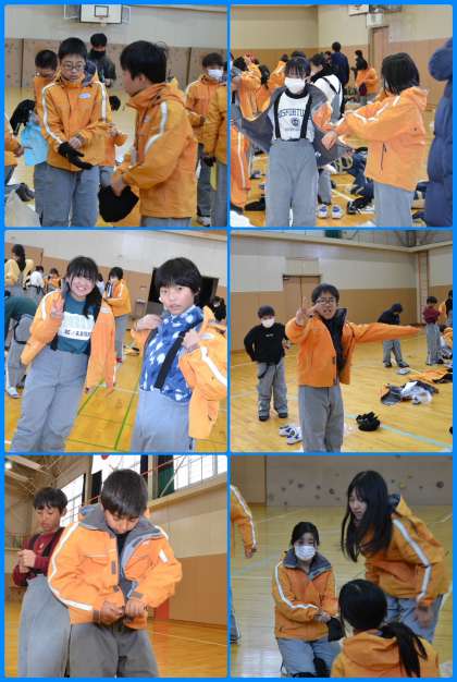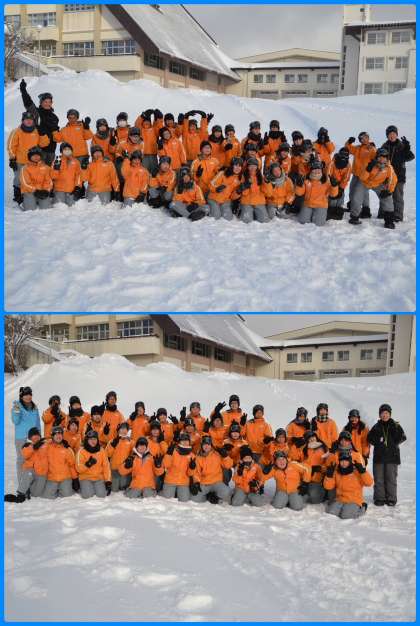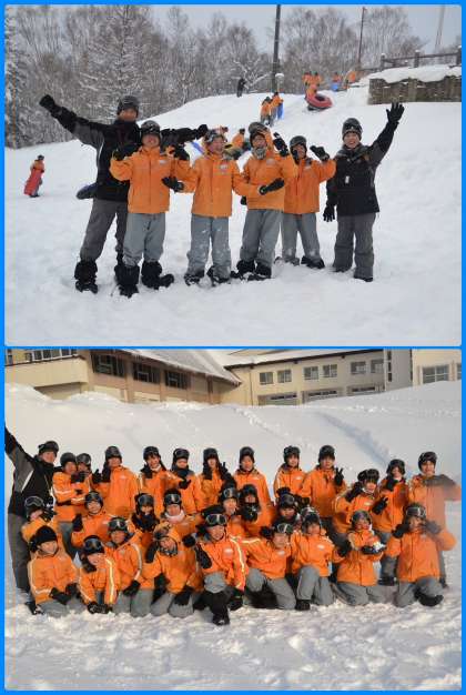 入所式の後は、スキーウエアのサイズ合わせ、そしてシューズと板も合わせます。写真はスキーウエアのサイズ合わせのところですが、なかなか着るのにも悪戦苦闘していました。シューズと板を合わせるのに至っては困難を極めてると言ったところでした。誰しも初めは通る道です。