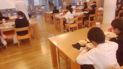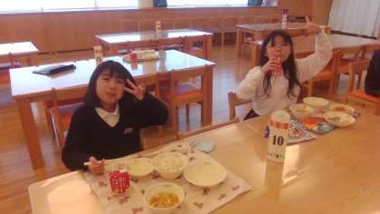 授業のあと、ランチルームで給食を食べました。