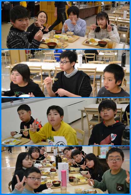 夕食の様子です。こちらが思っている以上にみんな元気でいてくれています。バイキングスタイルですので、何度も取りに行く姿が見られ、微笑ましく感じます。