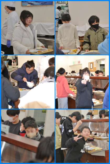 退所式の後は昼食です。ホームページでは食事の様子ばっかりお届けしているような気もしますが、決して食べてばかりというわけではありません。今日はカツカレーがメインでした。バイキングスタイルですので、好きなものを選んで好きなだけ食べられるます。5回の食事、とってもおいしかったです。