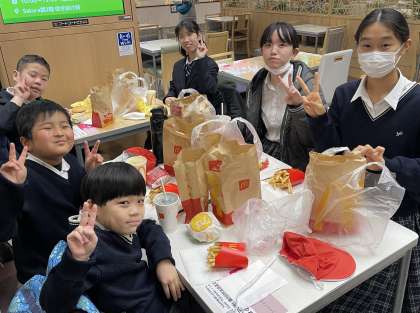 みんなとても嬉しそうでした。友だちと食べると楽しいね!