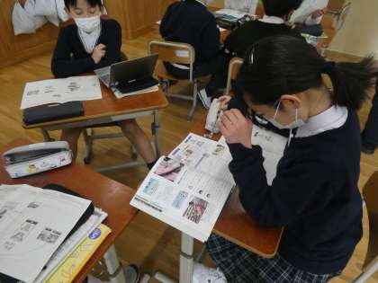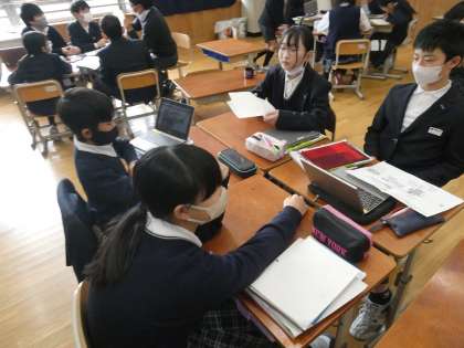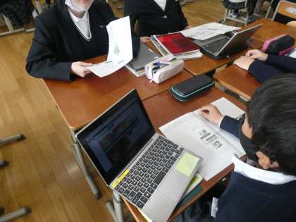 社会の学習では、販売業は情報をどのように使っているのか、GIGA端末で調べたり教科書をつかったりして調べたことを友達に発表していました。