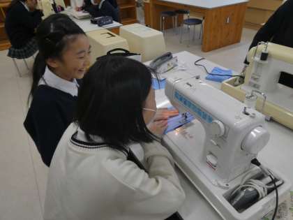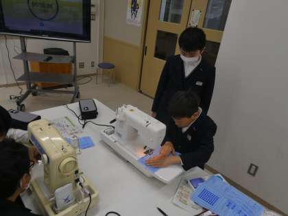 手順を再度確認して、ミシンを使っていましたが、思うように縫うことは難しいようでした。