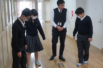 6年生は身近な電気の学習をしています。色んな力を電気に変えることができ、その電気で車が走る姿を観察していました。