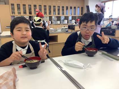 きのう収穫した大根でみそしるとおでんを作りました。
